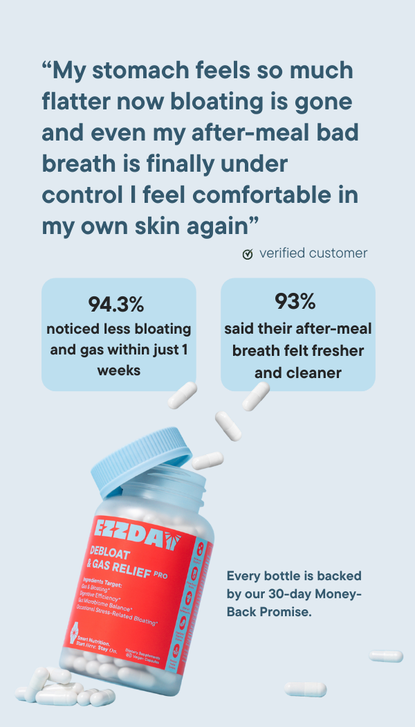 Rebalances your microbiome with clinical strength, 20 billion CFUs across 8 strains, to cut bloating at the source.